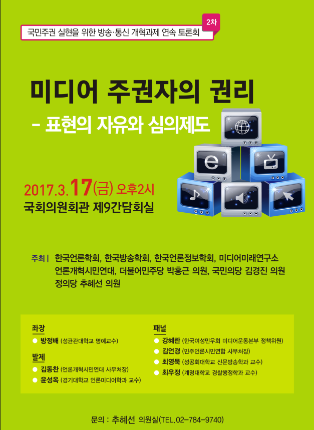 4) 주최: 한국언론학회, 한국방송학회, 한국언론정보학회, 미디어미래연구소, 언론개혁시민연대, 더불어민주당 박홍근 의원, 국민의당 김경진 의원, 정의당 추혜선 의원
