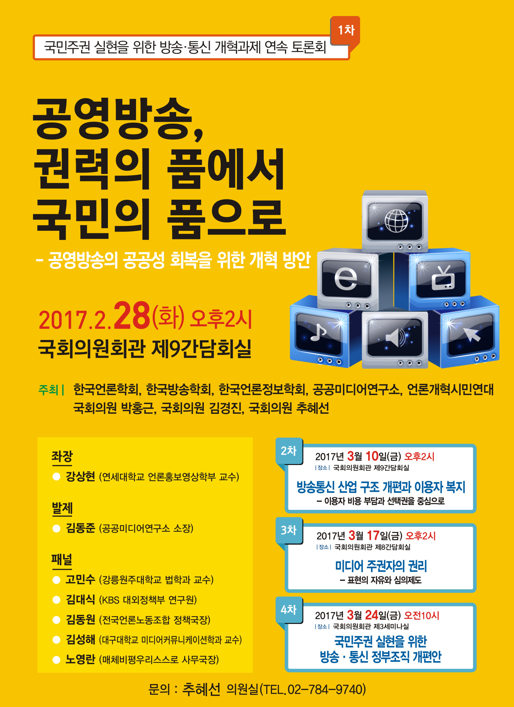 4) 주최: 한국언론학회, 한국방송학회, 한국언론정보학회, 공공미디어연구소, 언론개혁시민연대, 국회의원 박홍근, 국회의원 김경진, 국회의원 추혜선
