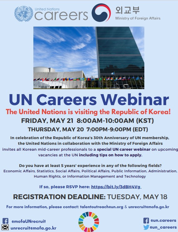 ㅇ 행사명 : 유엔 가입 30주년 기념 유엔 경력직 채용 설명회 (UN Careers Webinar)