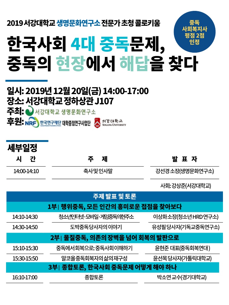 ? 주 제: '한국사회 4대 중독문제, 중독의 현장에서 해답을 찾다'