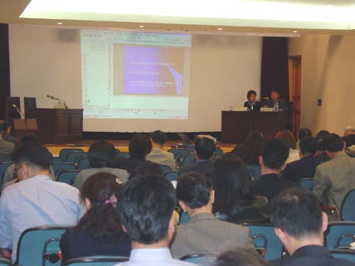 2003년 10월 31일(금) 한국사회복지회관 대강당에서 학회 회원 및 주요인사 150여명이 참석한 가운데 <참여정부의 노인복지정책 방향>이라는 대주제로 열린 2003년 추계학술대회에서 발표와 토론이 진행되고 있다./ 촬영자 : 김나영