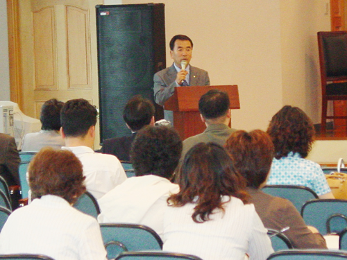 2004년 5월 28일(금) 한국사회복지회관 대강당에서 학회 회원 및 주요인사 180여명이 참석한 가운데 <노인복지 실천기법의 이해와 전망>이라는 대주제로 열린 2004년 춘계학술대회에서 한국노인복지학회 임춘식 회장이 개회사를 하고 있다./ 촬영자 : 임성미