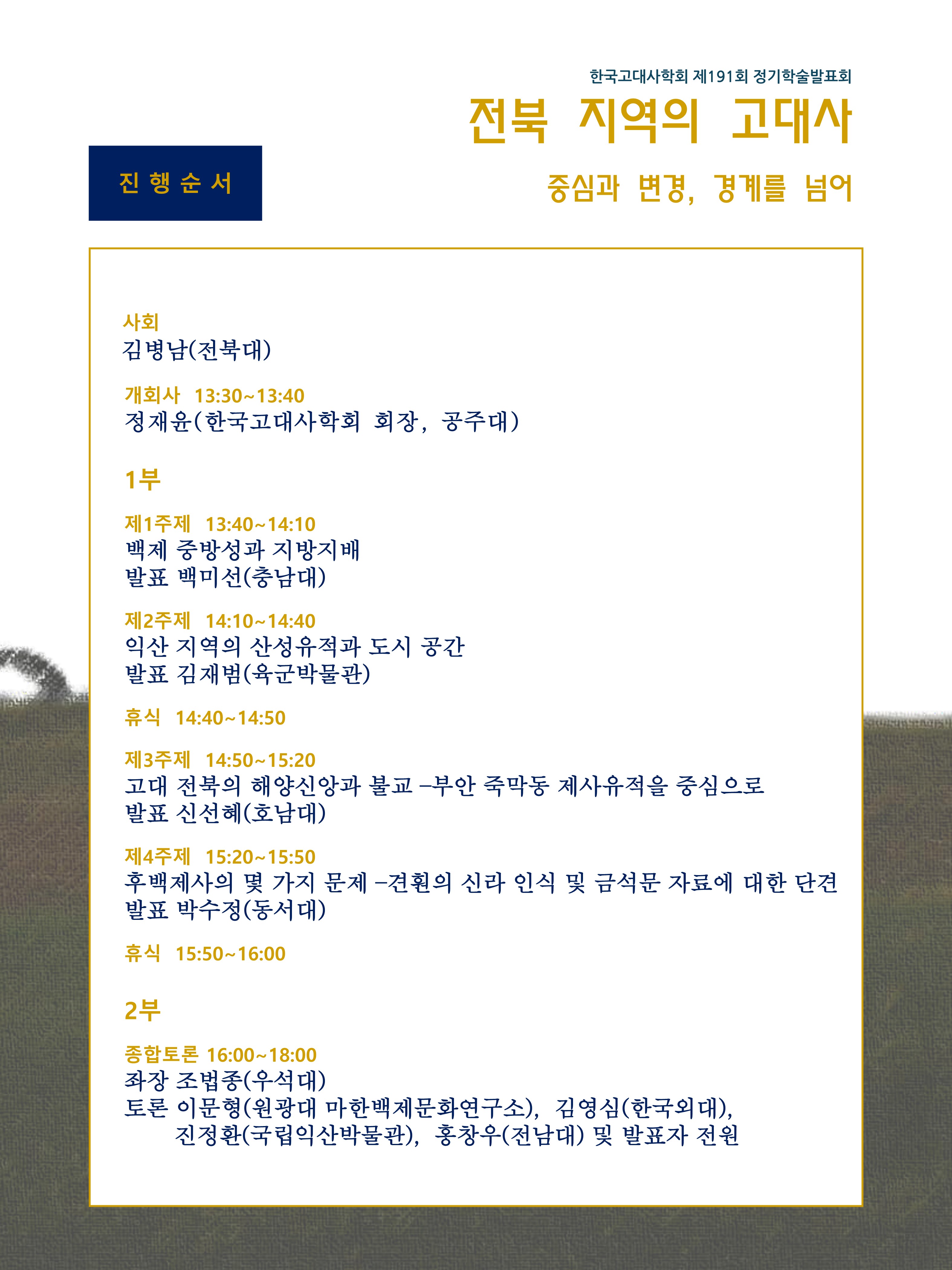 한국고대사학회 제191회 정기학술발표회 일정을 다음과 같이 공지합니다.