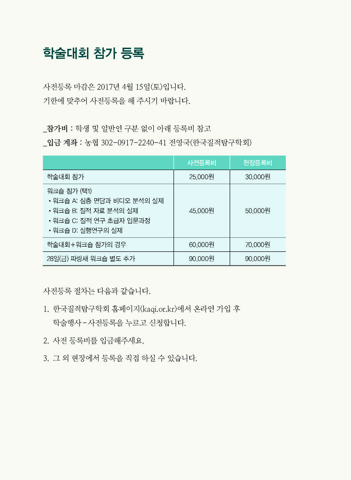 춘계 학술대회에서 진행할 질적연구 워크샵 개최에 관하여 안내해 드립니다.
