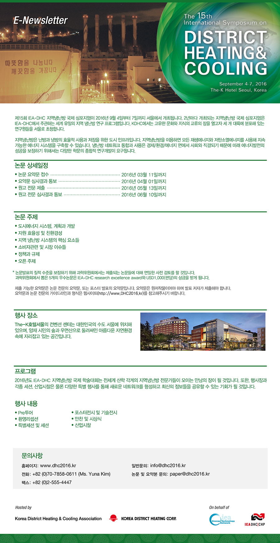 □ 문의처 : IEA-DHC 지역냉난방 국제 학술대회 사무국