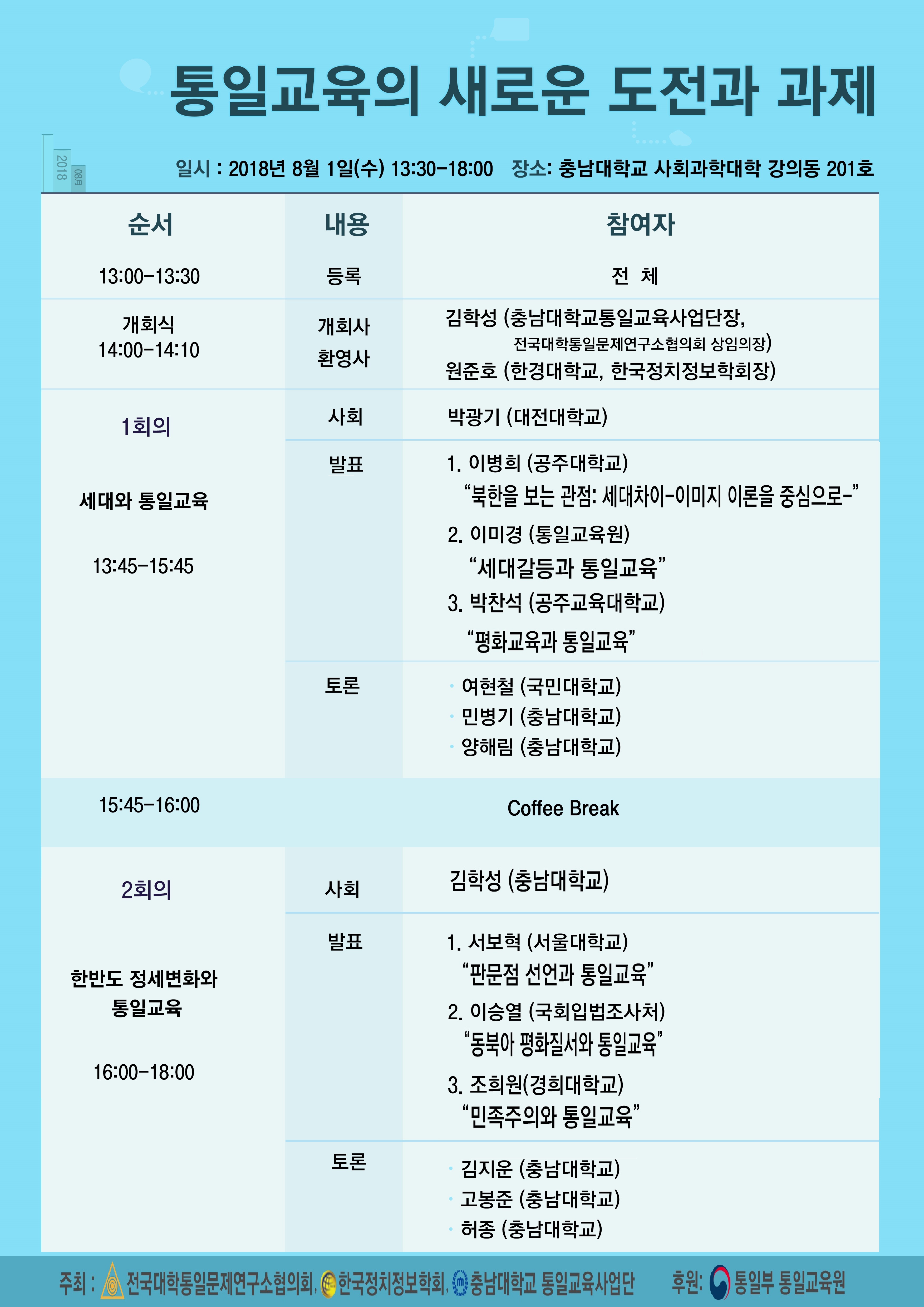 공동학술대회(전국 대학 통일문제연구소 협의회, 충남대학교 통일교육사업단, 한국정치정보학회)