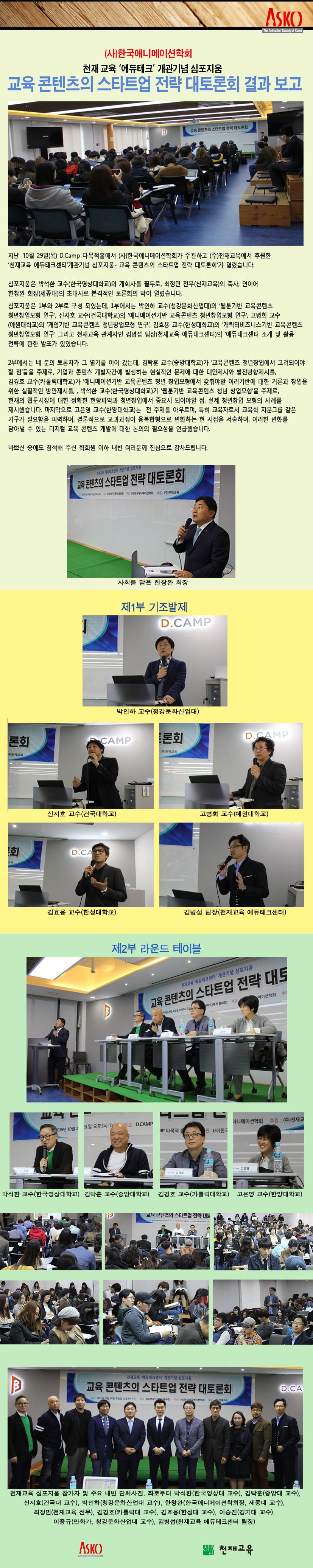 (사)한국애니메이션학회 주관, (주)천재교육 후원 '천재교육 심포지움' 결과 보고