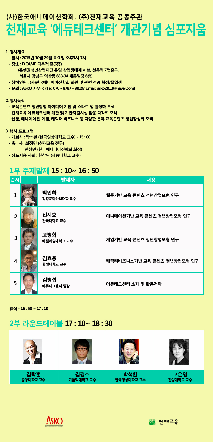 (사)한국애니메이션학회, (주)천재교육 공동주관, '천재교육 에듀테크센터 개관기념 심포지움' 안내