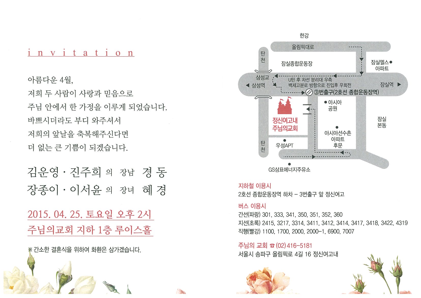 우리학회 회원이신 전)육군사관학교 김운영 교수의 자녀 혼사가 있어 아래와 같이 알려드리오니, 회원여러분들의 많은 축복바랍니다.