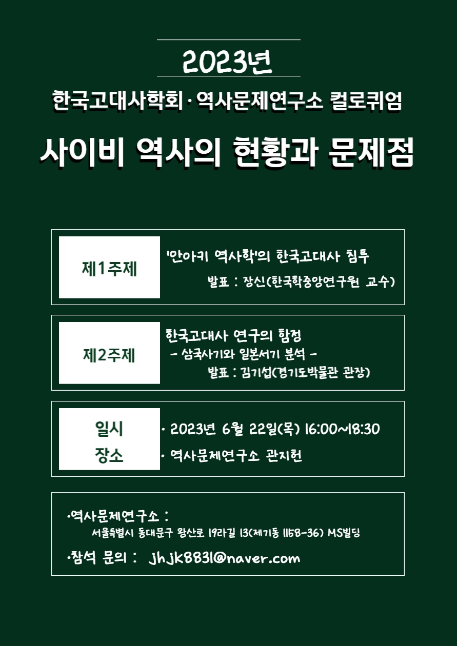 2023년 한국고대사학회·역사문제연구소 컬로퀴엄 일정을 안내드립니다.