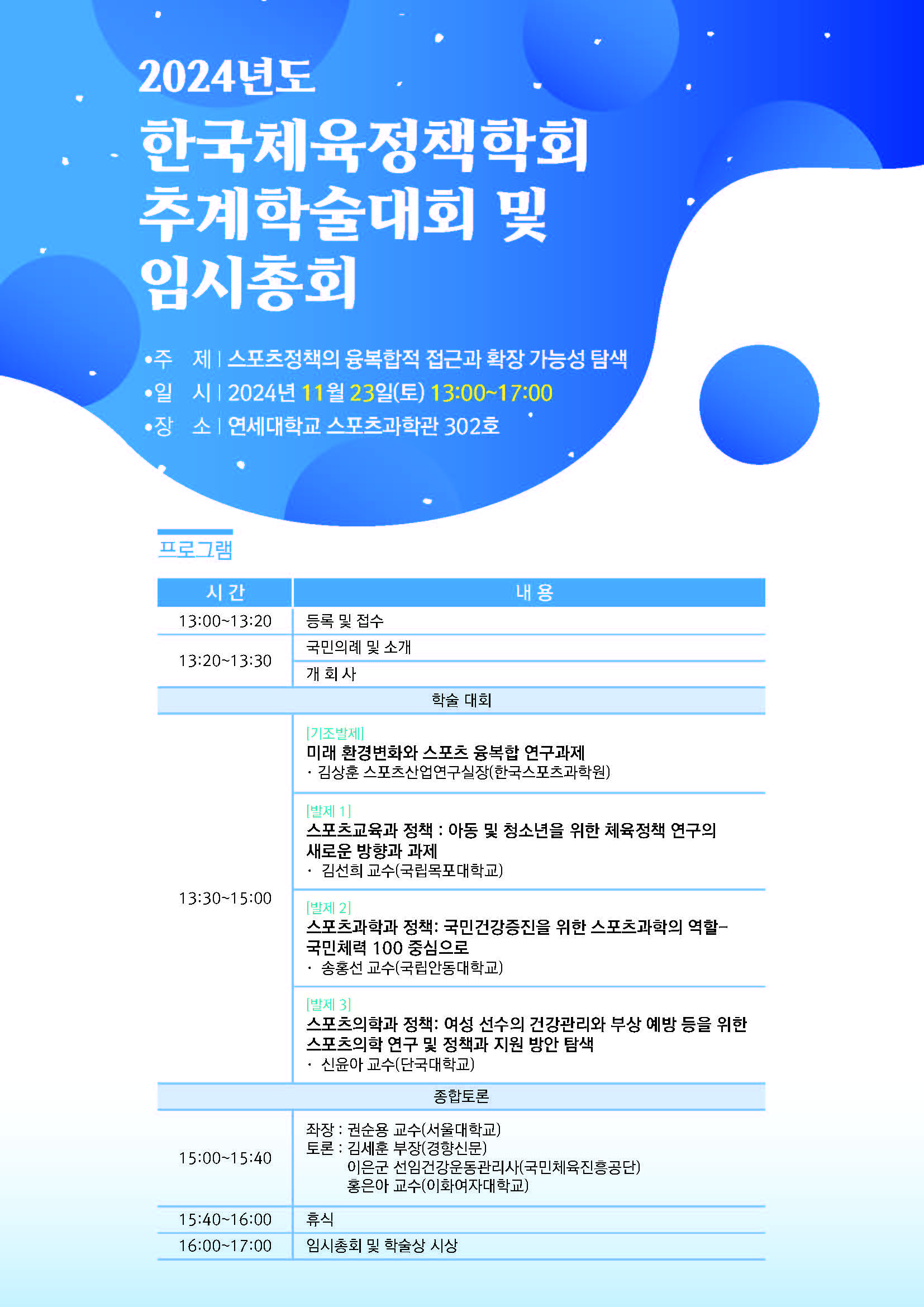 2024년도 한국체육정책학회 추계학술대회 및 임시총회 안내