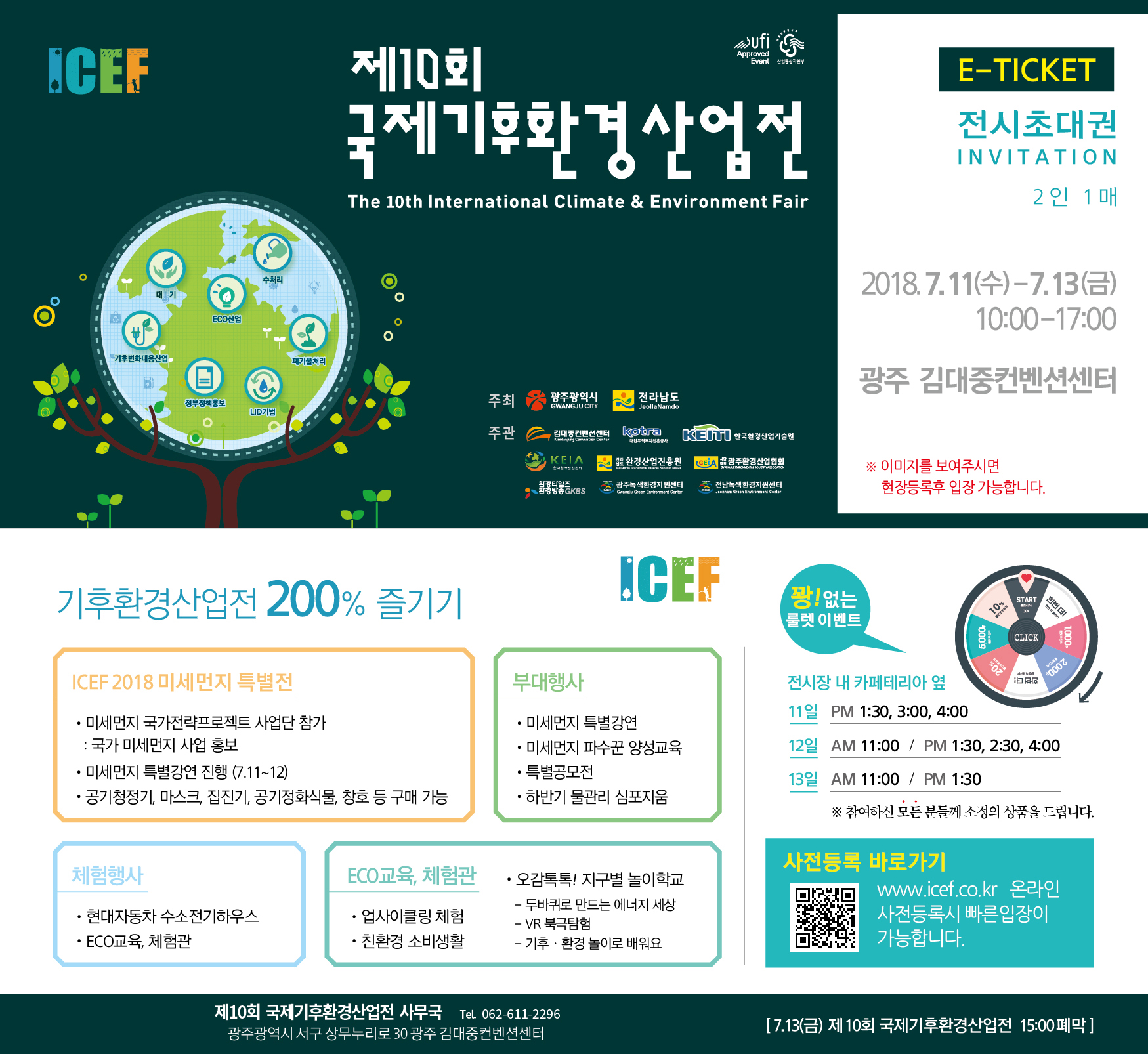 특히 금년에는 ECO교육, 체험관 운영, 미세먼지 강연, 환경 공모전, 미세먼저특별전 등 참관객이 직접 참여하고 체험할 수 있는 다양한 행사를 동시에 개최하고자 합니다.