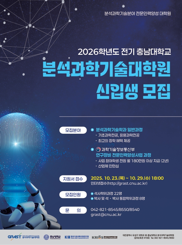충남대학교 분석과학기술대학원 - 2026학년도 전기 신입생 모집