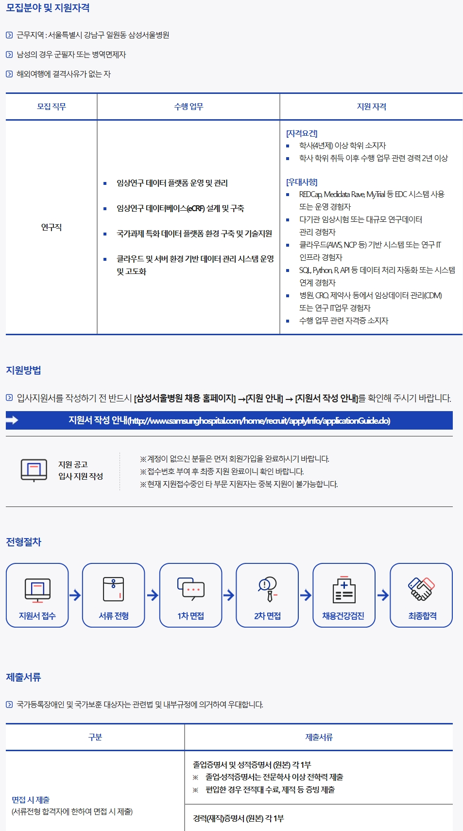 ▷ 접수방법 : 삼성서울병원 채용 홈페이지