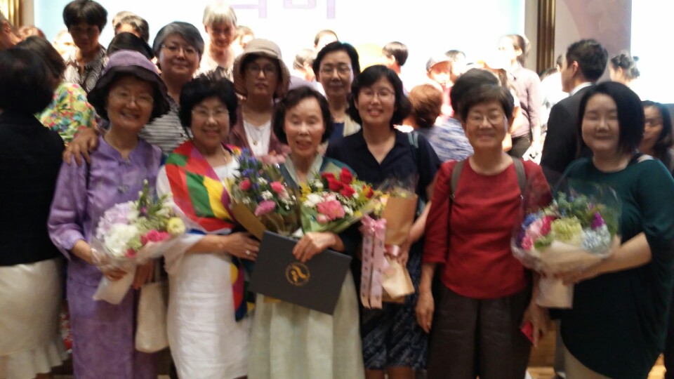 우리회 회원이시며 자문위원이신 김혜원 선생님께서 서울시에서 주는 '서울평화상'을 수상하셨습니다. 김혜원 선생님은 정대협 실행위원으로 초기부터 물심양면으로 일하신 공로를 인정받아 수상하시게 되었습니다. 시상식은 8월12일 서울시청 8층 다목적홀에서 광복 70주년 기념 평화콘서트 '나비'가 열린 후 열렸으며, 이날 일본군'위안부' 피해자인 길원옥 할머니도 수상하셨습니다. 우리회를 위해서 오랫동안 애정과 열정으로 일해오신 김혜원 선생님의 수상을 축하드립니다.