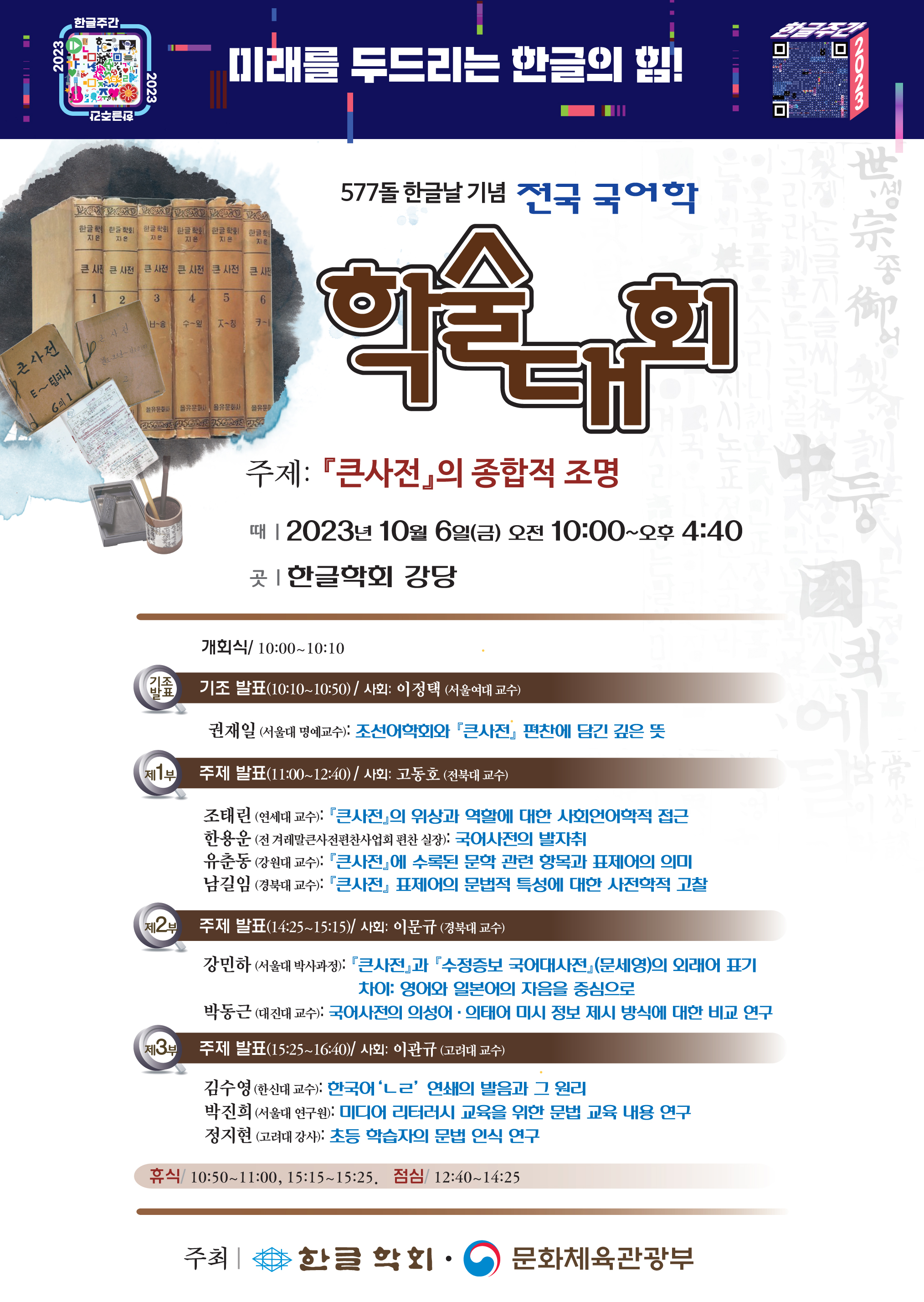 이번 학술대회에서는 오늘날 우리말글 규범의 주춧돌이 된 <큰사전>을 주제로 하여
