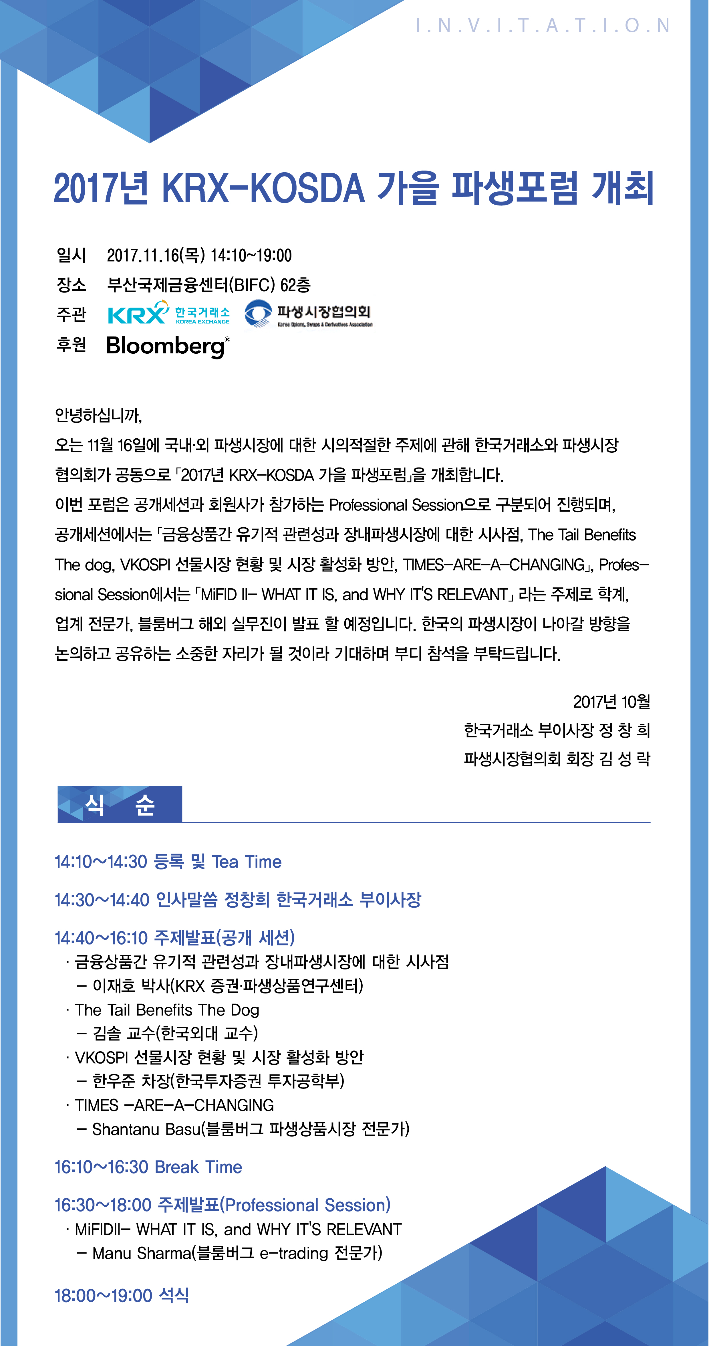 '17년 KRX-KOSDA 가을 파생포럼을 개최합니다.