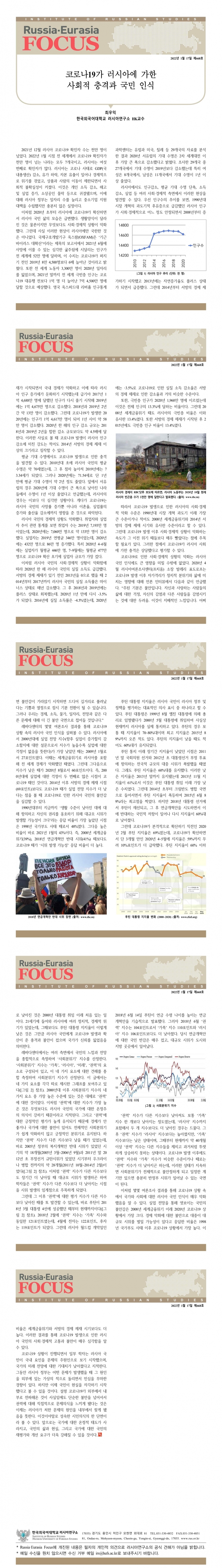 제668호 코로나19가 러시아에 가한 사회적 충격과 국민 인식