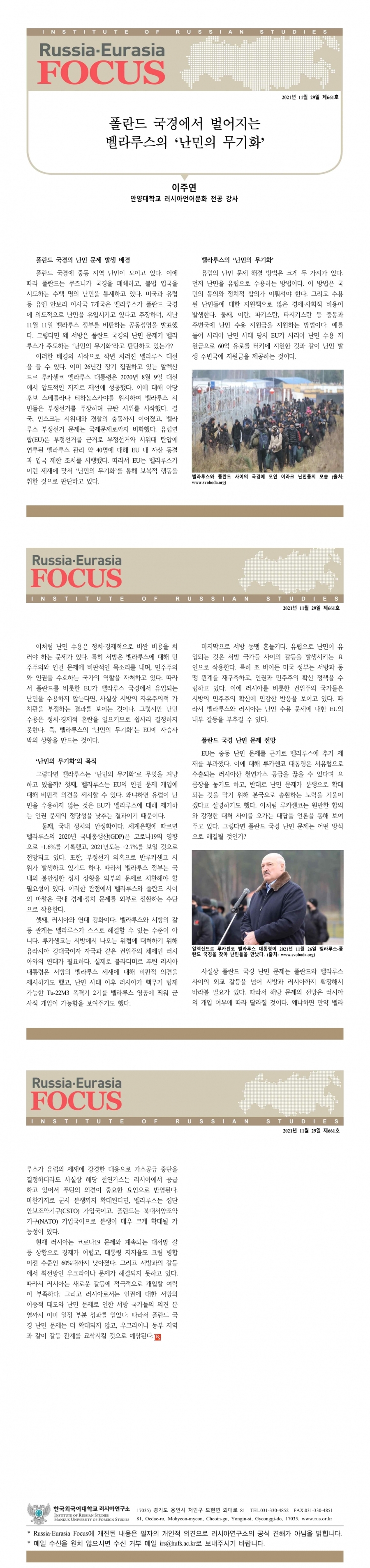 제661호 폴란드 국경에서 벌어지는 벨라루스의 ‘난민의 무기화’