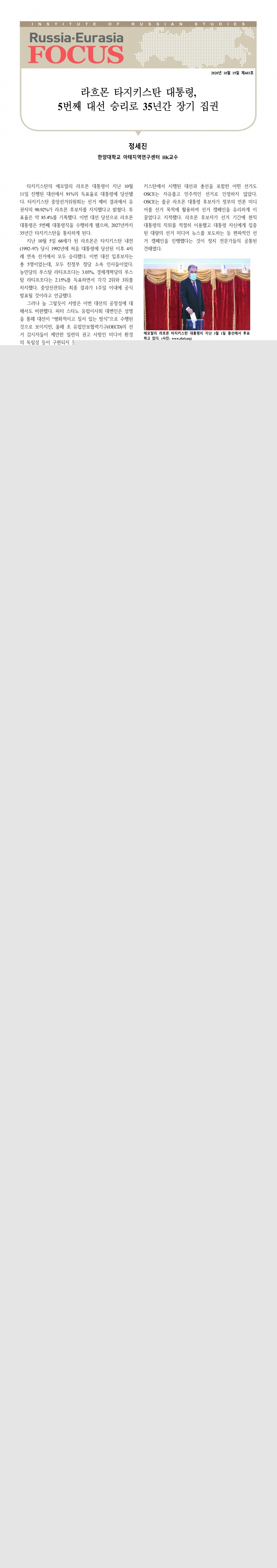제603호 라흐몬 타지키스탄 대통령, 5번째 대선 승리로 35년간 장기 집권