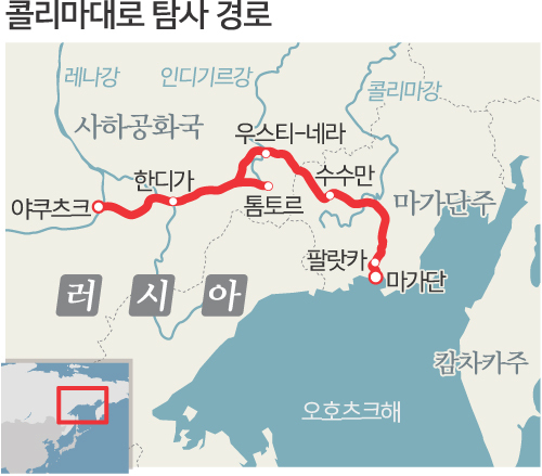 한국외국어대 러시아연구소의 콜리마대로 학술탐사팀은 7월 24일부터 8월 3일까지 한국해양수산개발원, 러시아 북동연방대와 공동으로 ‘뼈 위의 도로’를 자동차로 관통하면서 이 지역이 가진 역사적, 지리적 의미와 러시아연방 소수민족의 삶을 들여다봤다.