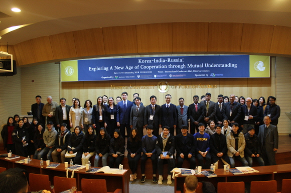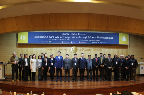 2018년 12월 13~14일 이틀에 걸쳐 러시아연구소는 한국외대 서울캠퍼스 미네르바콤플렉스 국제회의실에서 “한국-인도-러시아: 상호이해를 바탕으로 한 새로운 협력의 시대 모색 (Korea-India-Russia: Exploring A New Age of Cooperation through Mutual Understanding)”이라는 주제로 국제학술회의를 개최했다.