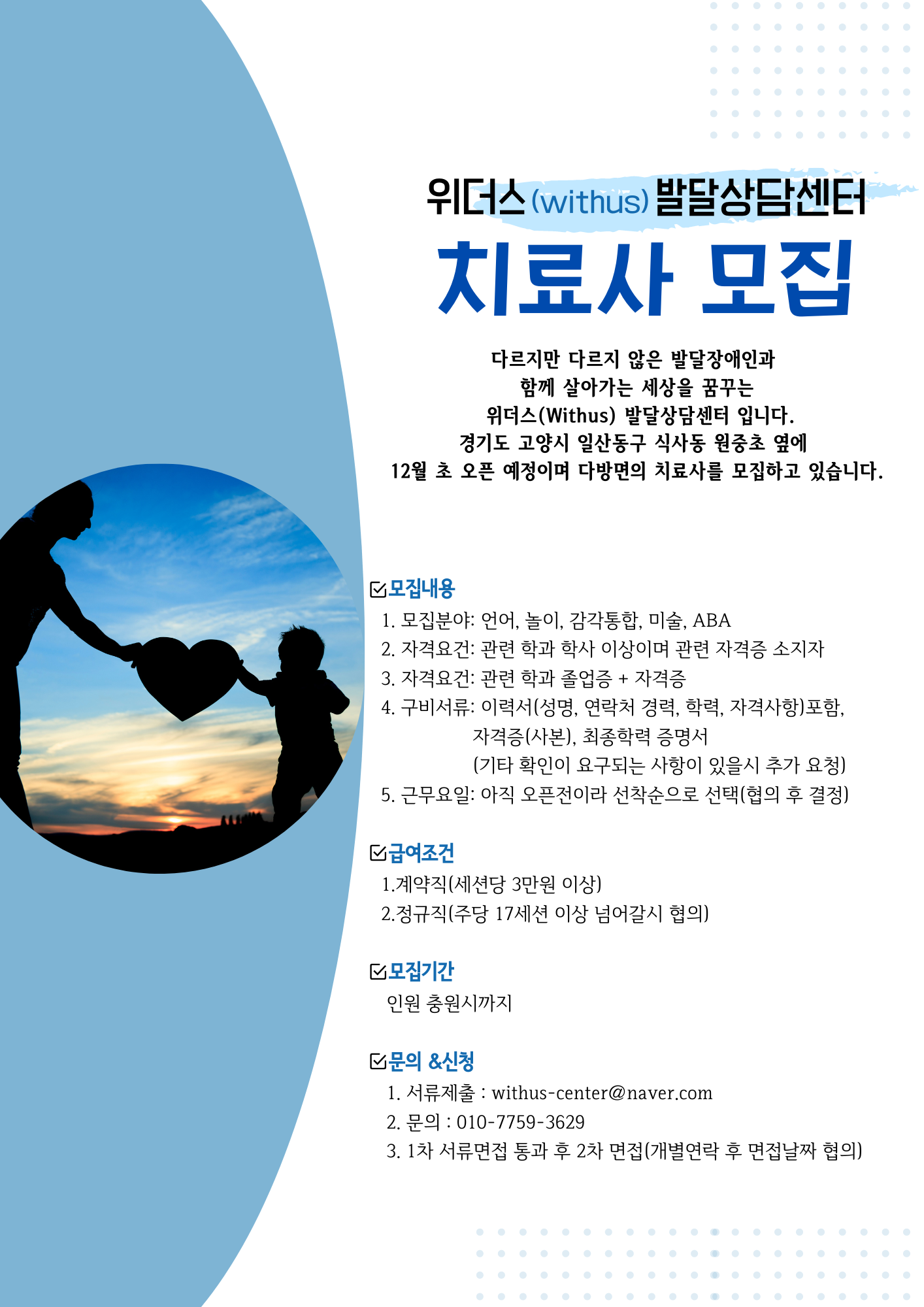 함께 살아가는 세상을 꿈꾸는 위더스(Withus) 발달상담센터 입니다.