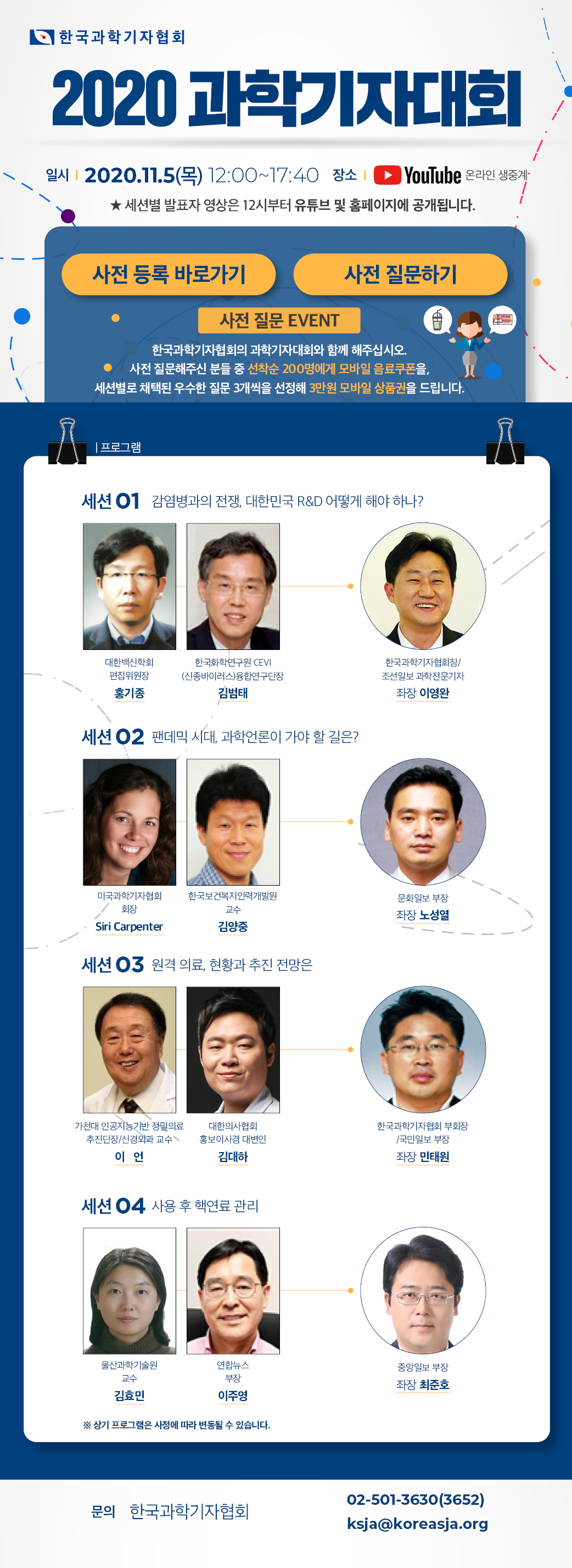 협회는 2020과학기자대회를 11월 5일(목), 온라인생중계로 개최합니다.