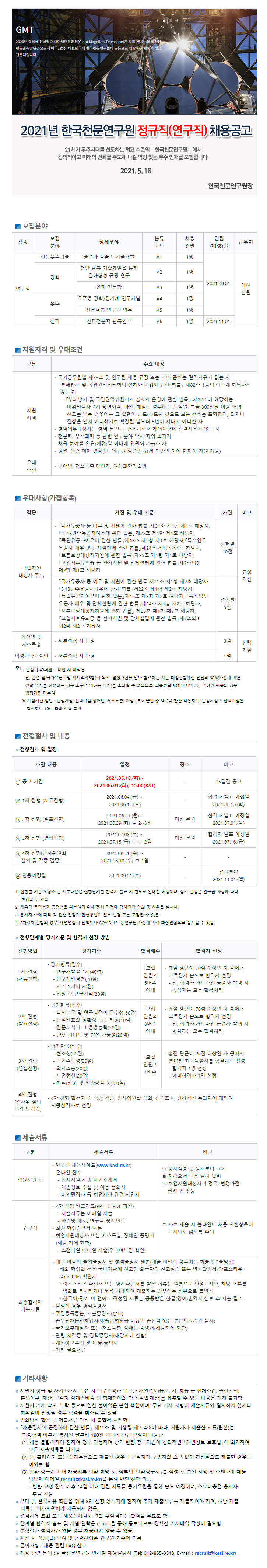 1. 채용내용 : 2021년 한국천문연구원 정규직(연구직) 채용공고