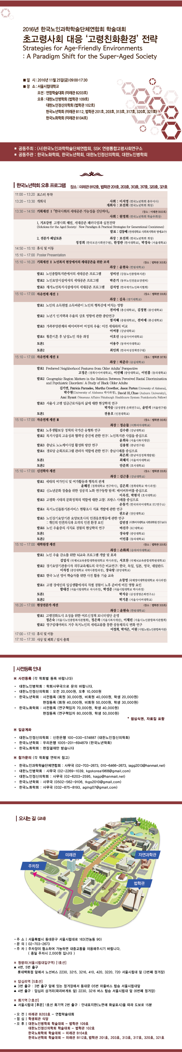 <한국노년학회 2016 추계학술대회 안내>한국노년학회>