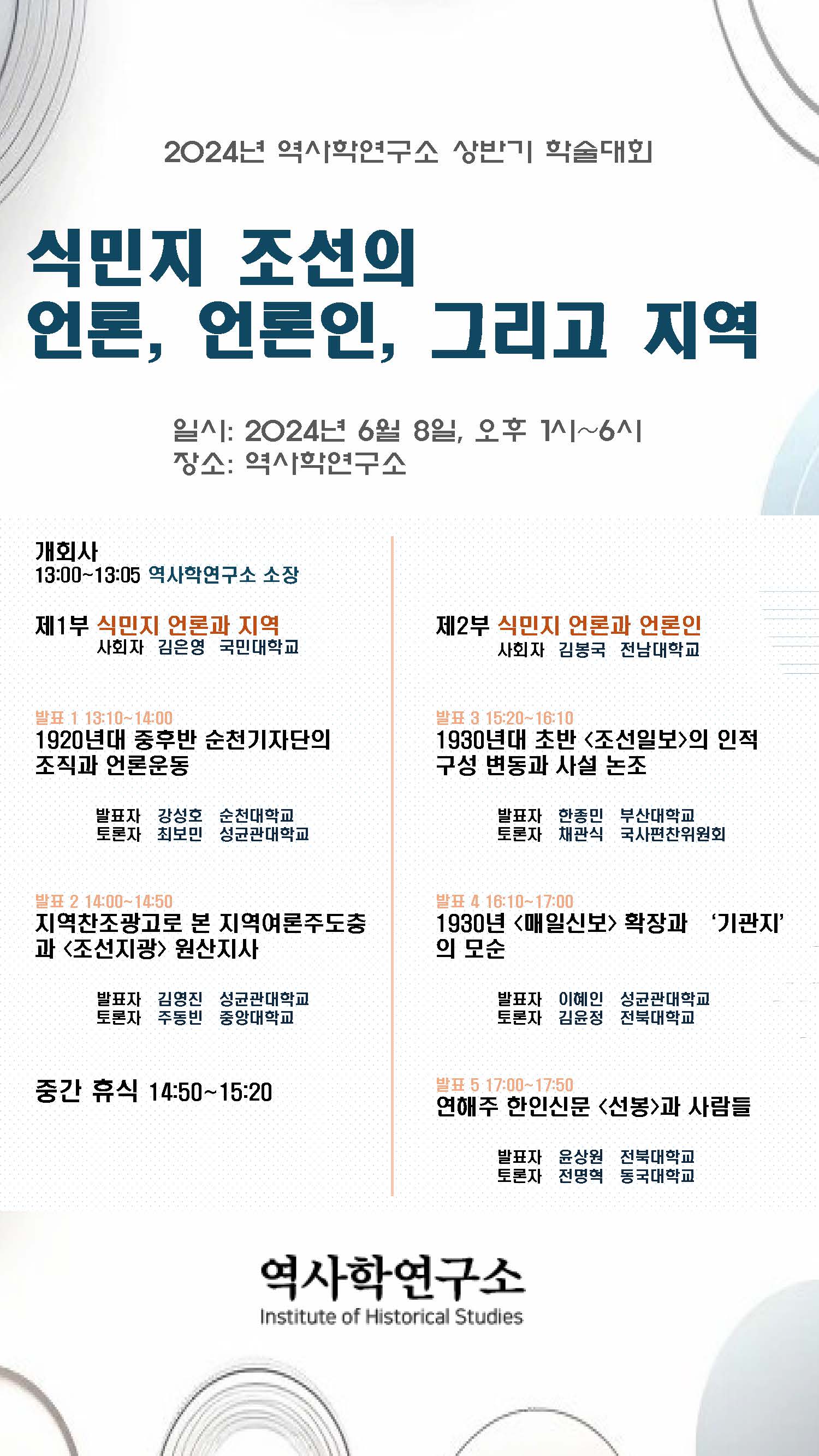 역사학연구소에서는 2024년 상반기 학술대회를 개최합니다.