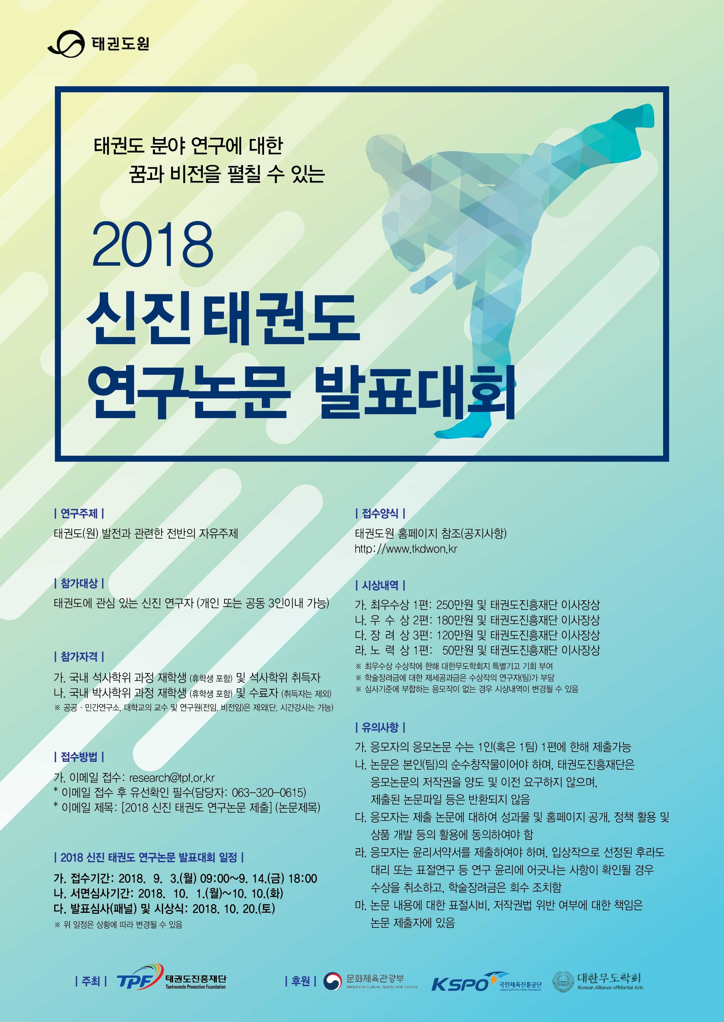 「2018 신진 태권도 연구논문 발표대회」 개최안내
