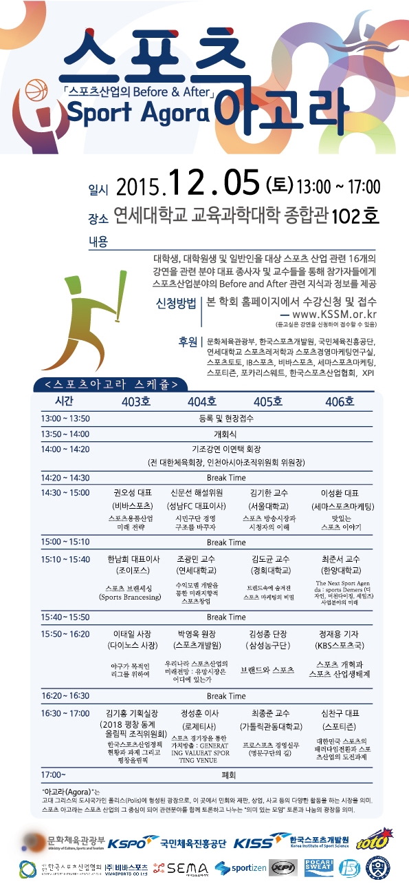 20주년 기념 (사)한국스포츠산업경영학회 스포츠 아고라를 개최합니다.