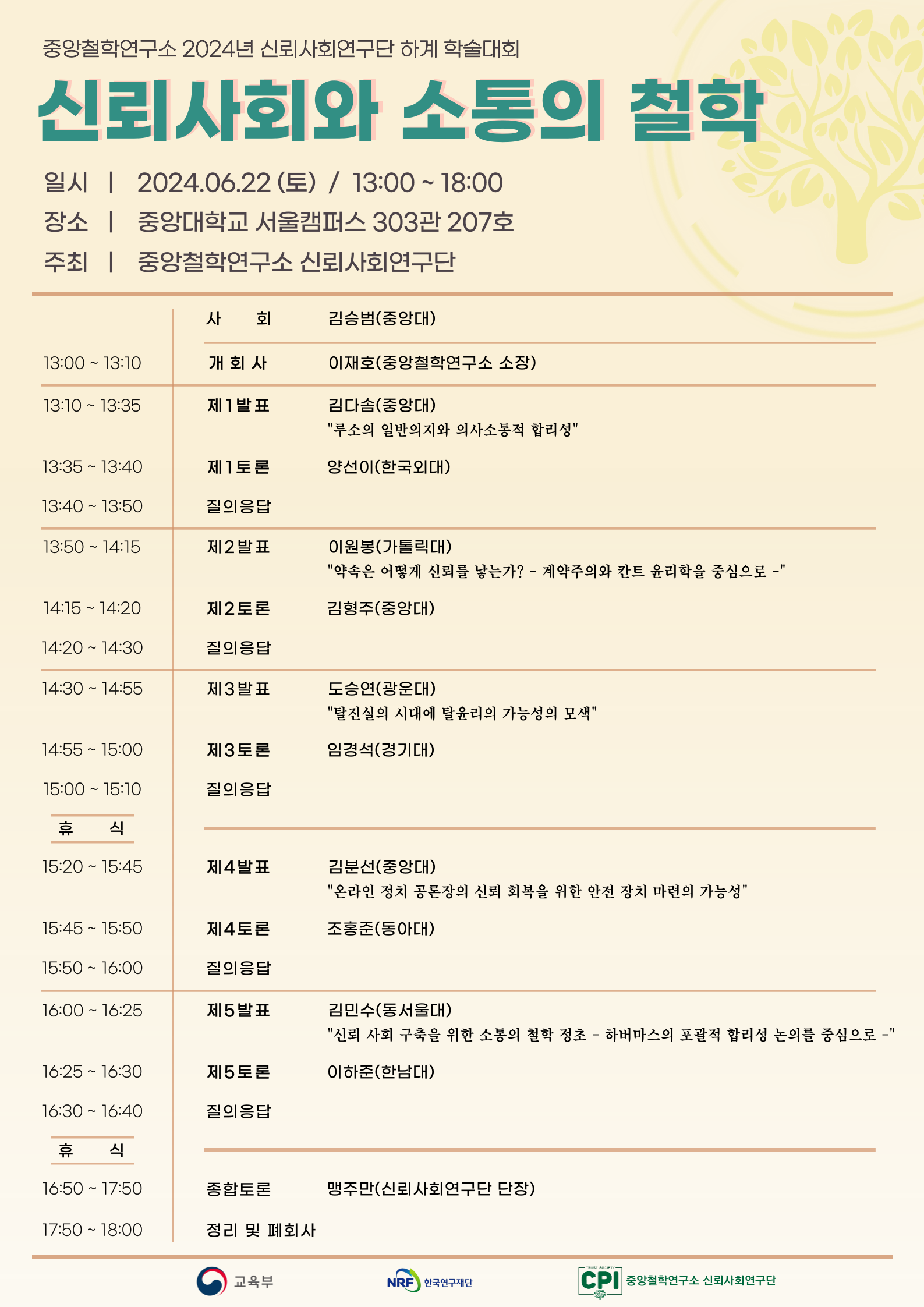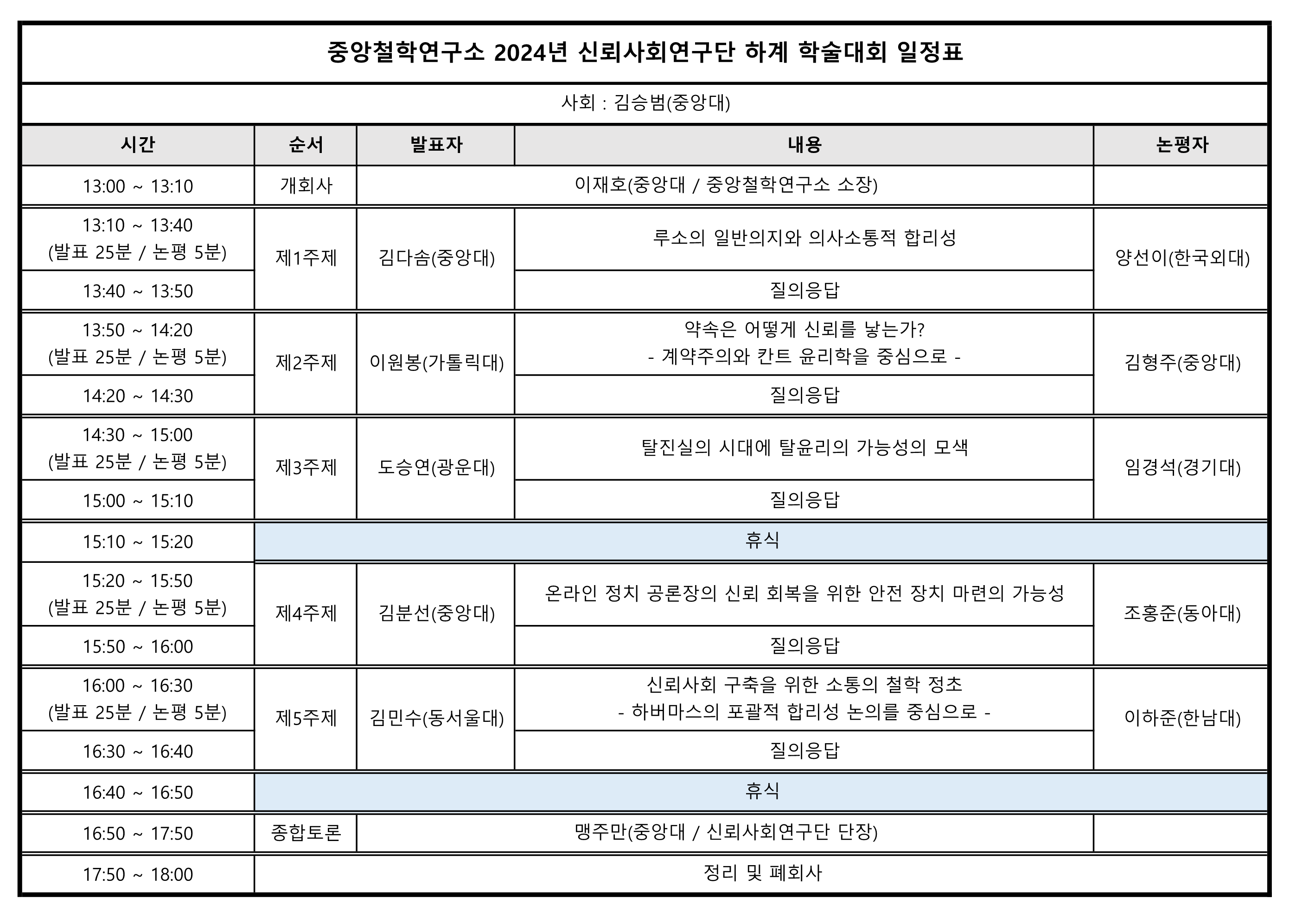 중앙철학연구소 신뢰사업단에서 인문사회연구소사업 선정(2023) 후 첫 번째 학술대회를 개최합니다.