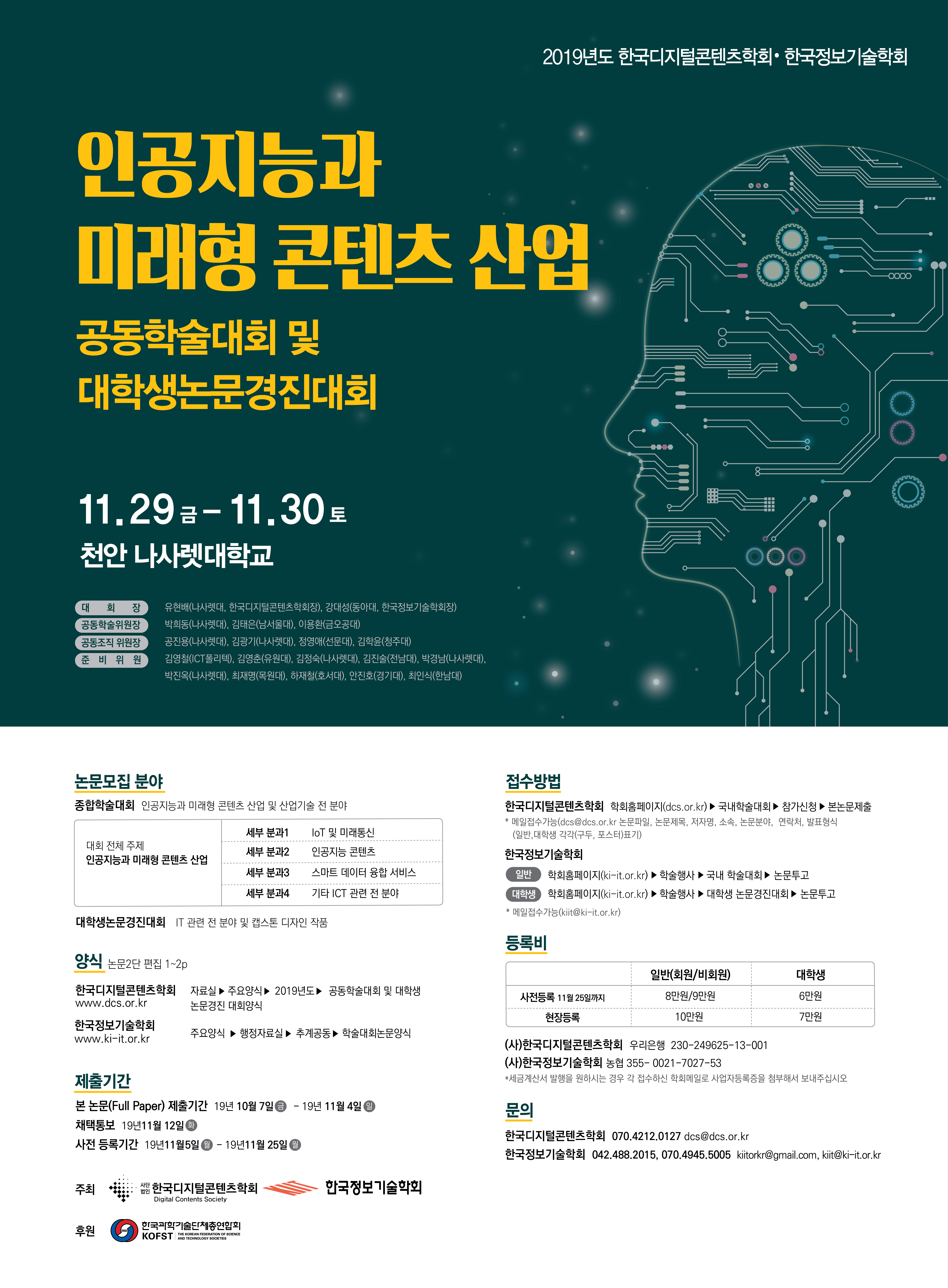 - 문의처 : 한국디지털콘텐츠학회(070-4212-0127, dcs@dcs.or.kr)