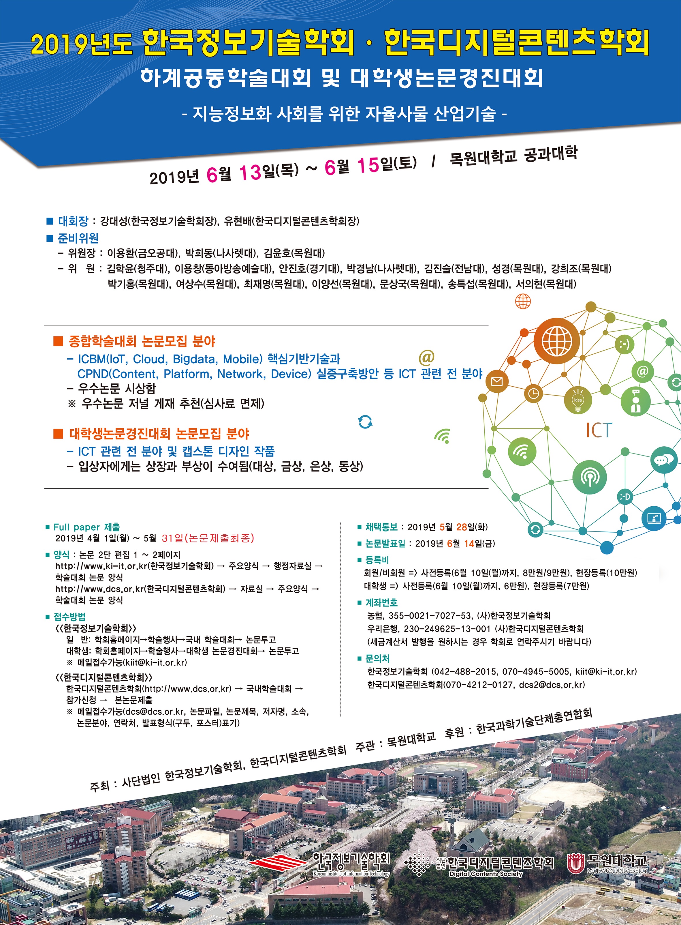 · 국내학술대회명 : 2019년도 한국디지털콘텐츠학회・한국정보기술학회 공동학술대회 및 대학생논문경진대회