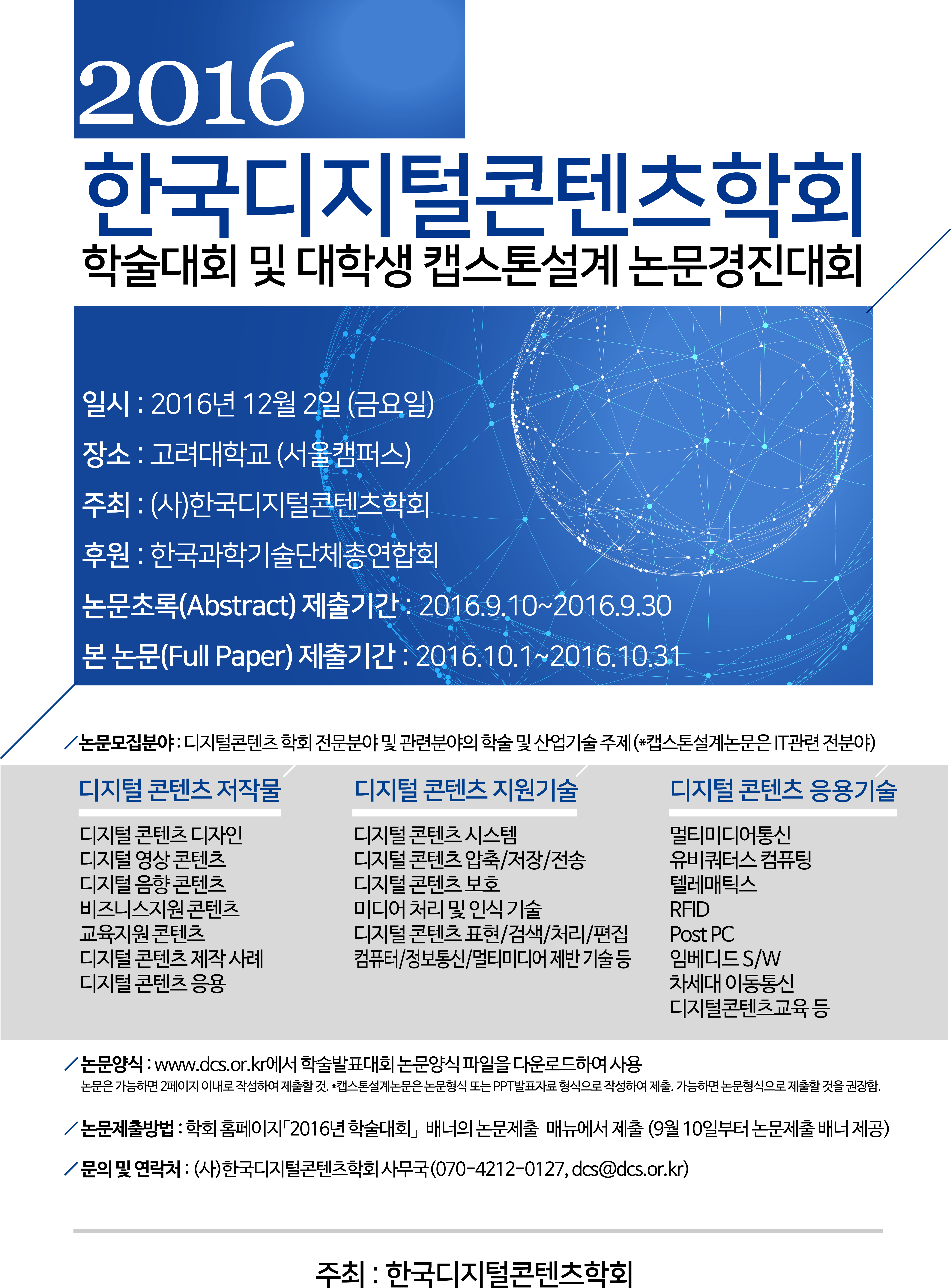 고려대학교 서울캠퍼스에서 2016년 한국디지털콘텐츠학회 학술대회 및 대학생 캡스톤설계논문