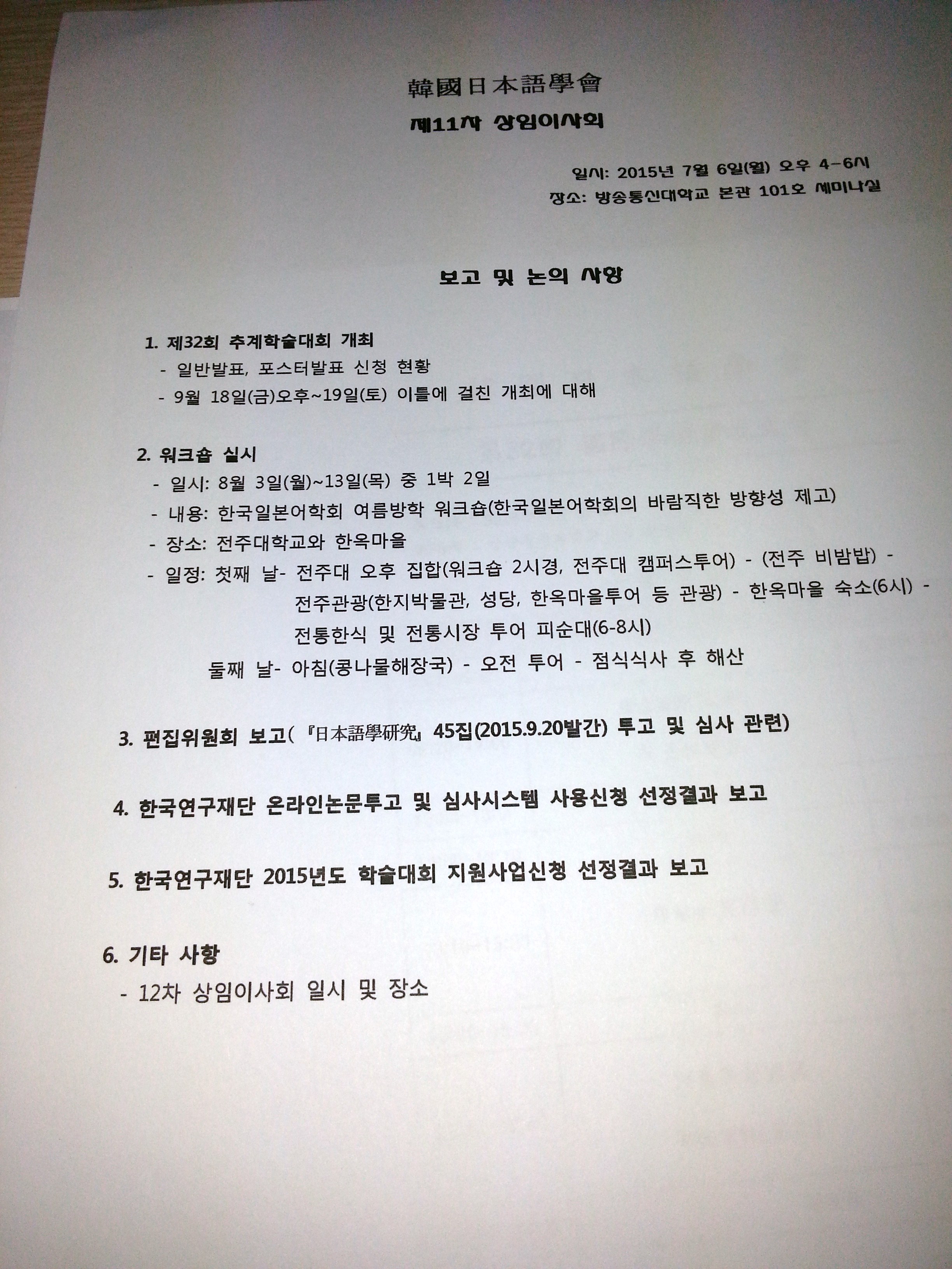한국방송통신대학교 본관 세미나실에서 11차 상임이사회가 있었습니다. ^^