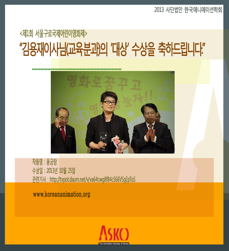 김용재이사님의 <제1회 구로국제어린이영화제> 대상 수상을 축하드립니다.