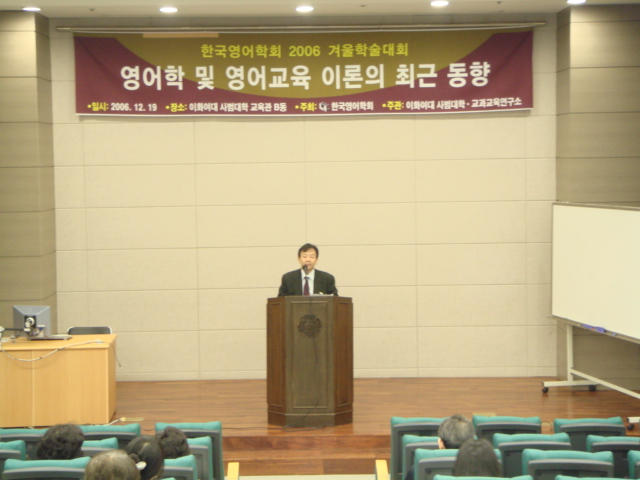 안동환 회장님의 개회사와 전회장님이신 이익환교수님께 감사패 전달