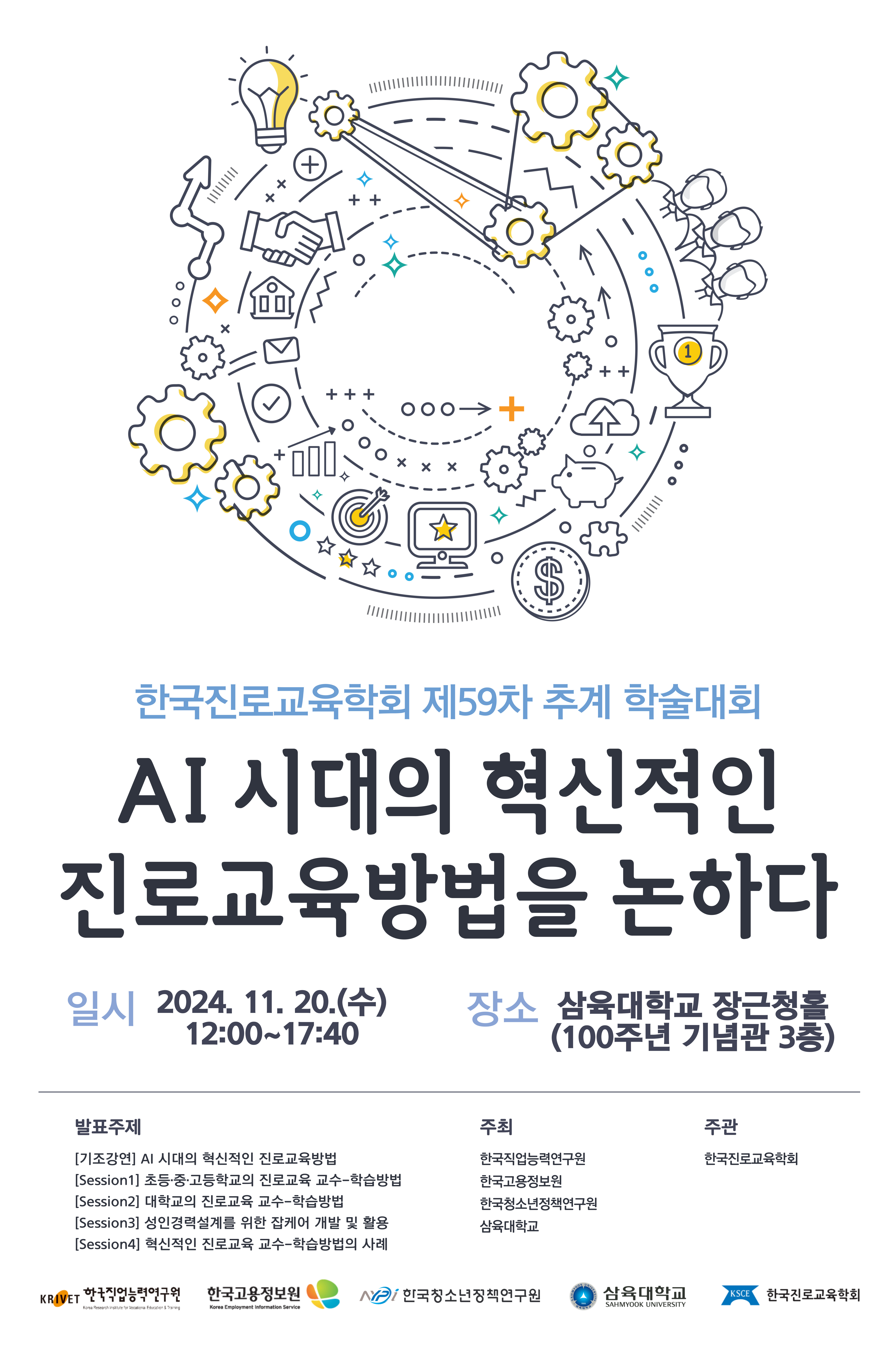한국진로교육학회는 2024년 11월 20일(수) ‘AI시대의 혁신적인 진로교육방법을 논하다’라는 주제로 제59차 추계학술대회를 개최합니다.