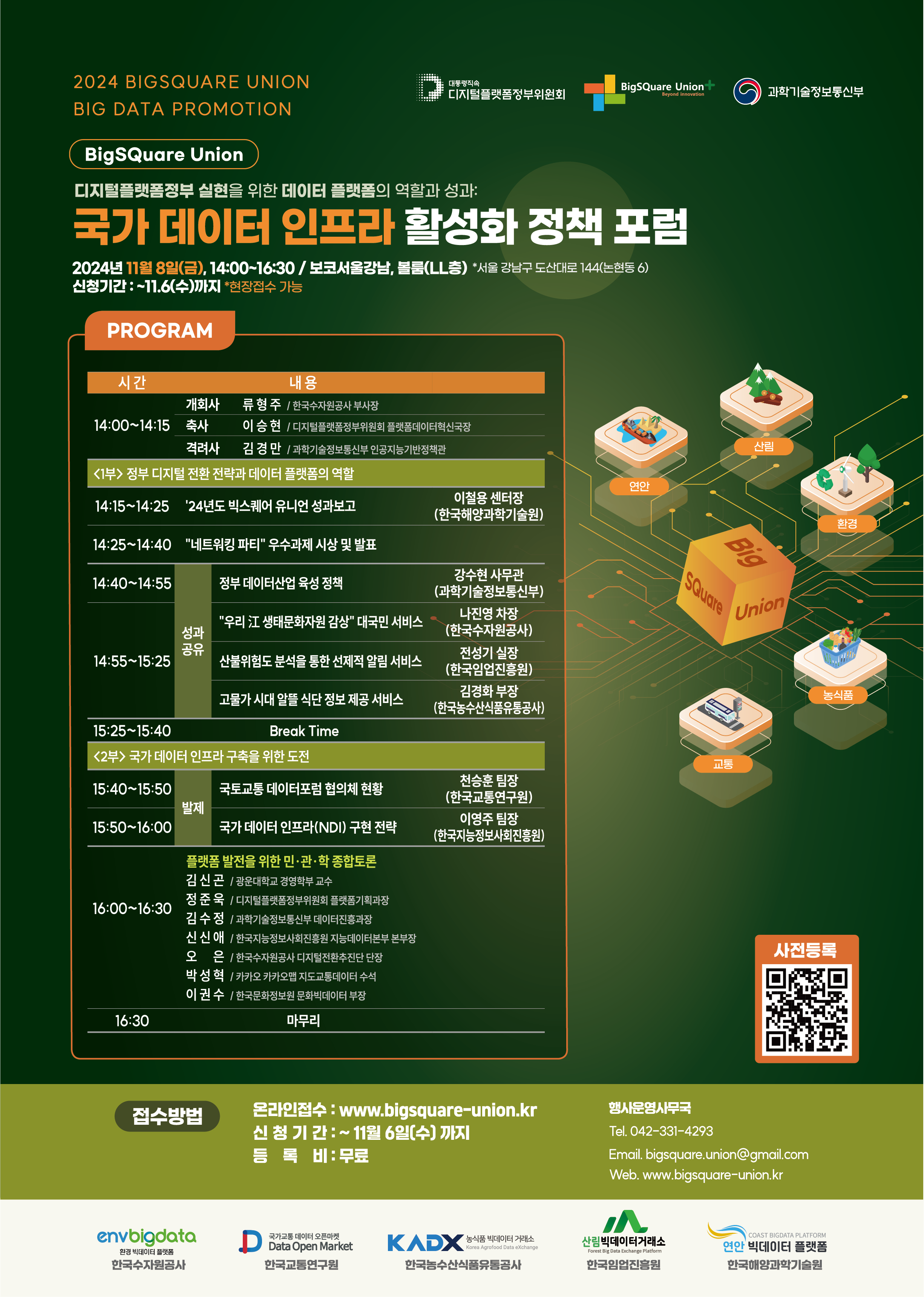 국가 데이터 인프라 활성화 정책 포럼이 11월 8일 서울(보코서울강남, 볼룸 LL층) 에서 진행됩니다.