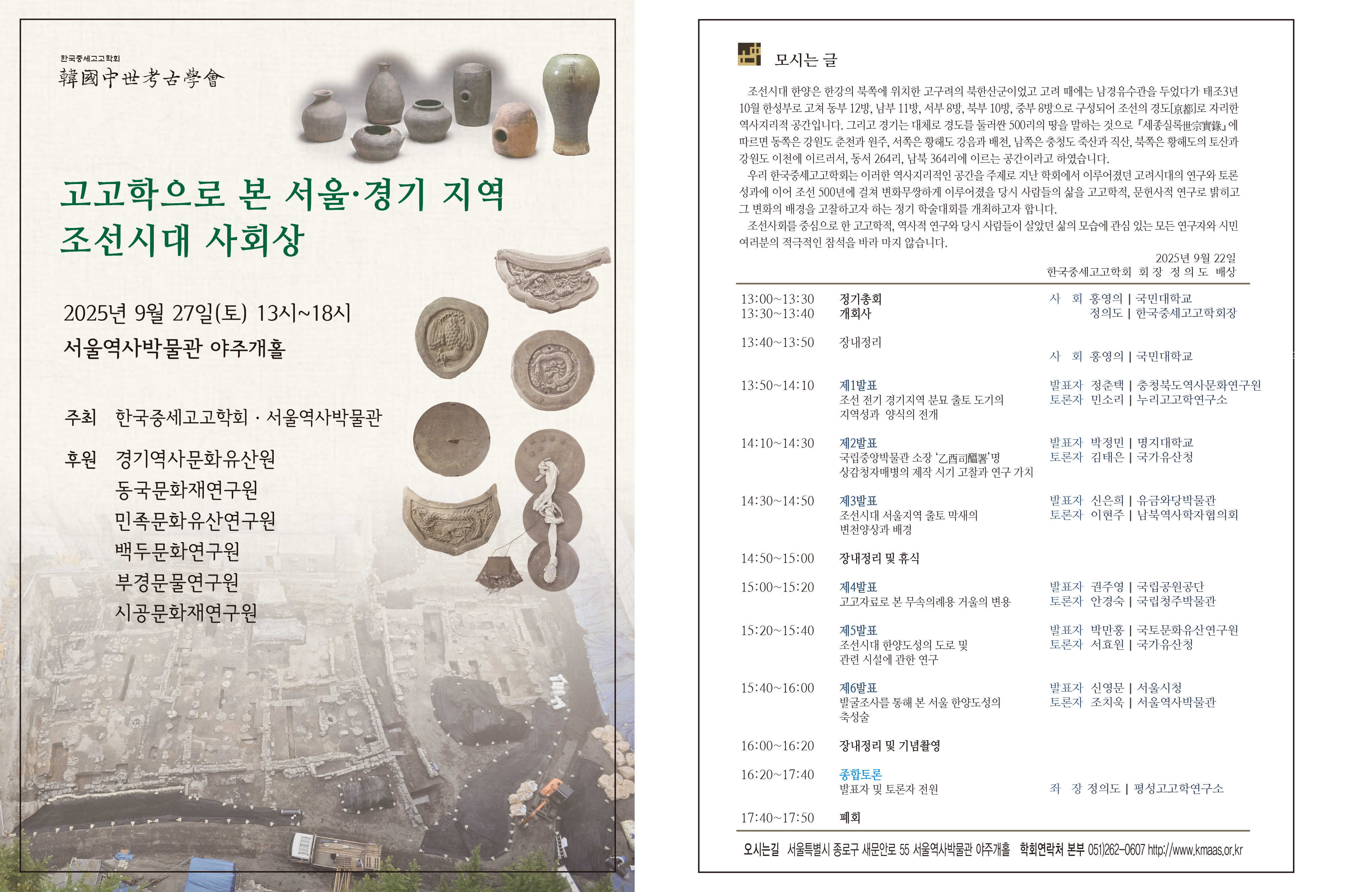 추계학술대회 <고고학으로 본 서울 · 경기지역 조선시대 사회상>을 개최하오니,