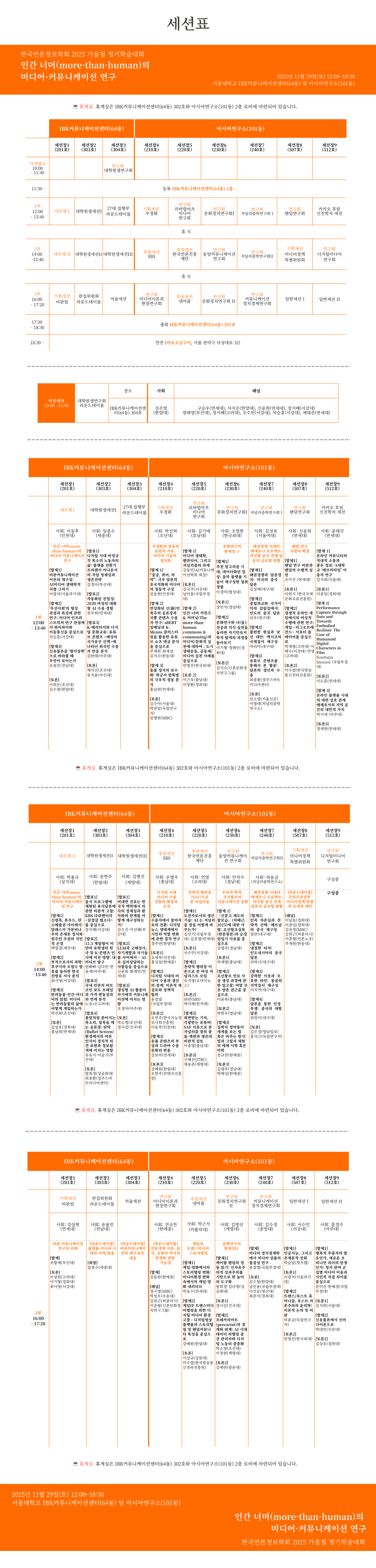 2. 2025 한국언론정보학회 가을철 정기학술대회 세션표를 다음과 같이 안내드립니다.