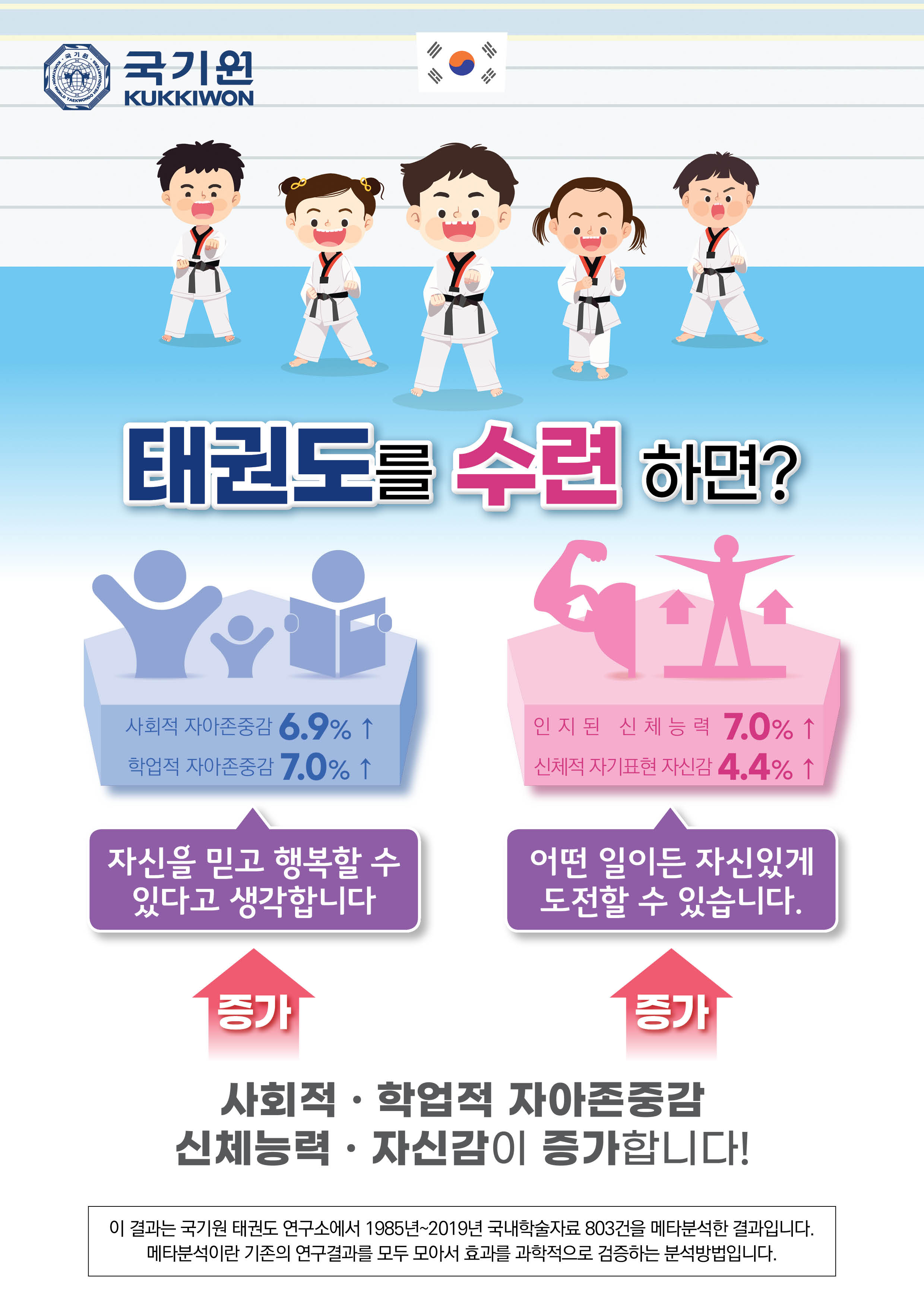 국기원 태권도연구소에서는 이러한 과학적 근거를 일선 태권도지도자들께 제공하고자 인포그래픽 형태로 제작하였습니다.