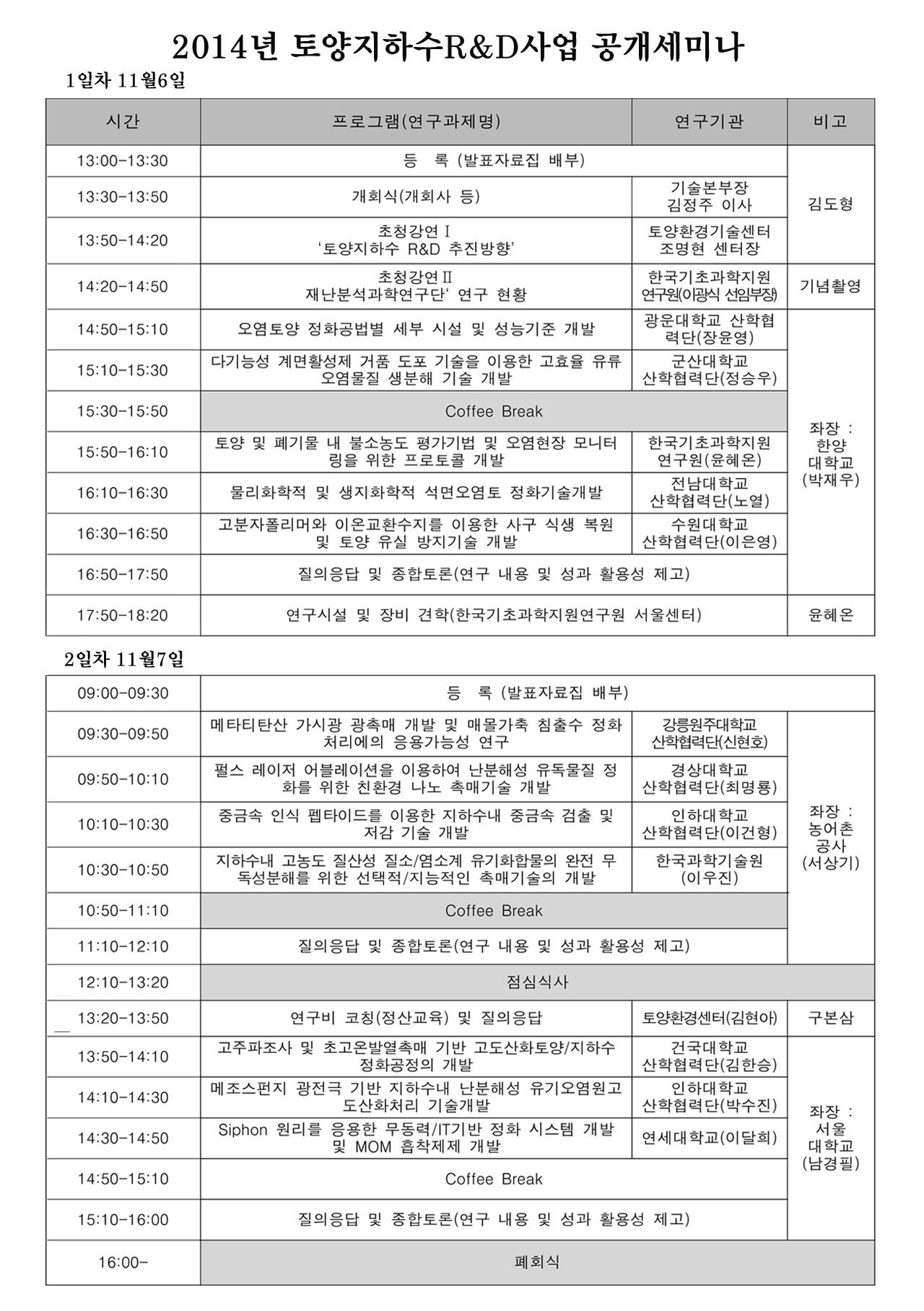 행사명 : 2014년 토양지하수 오염방지기술개발사업 공개세미나