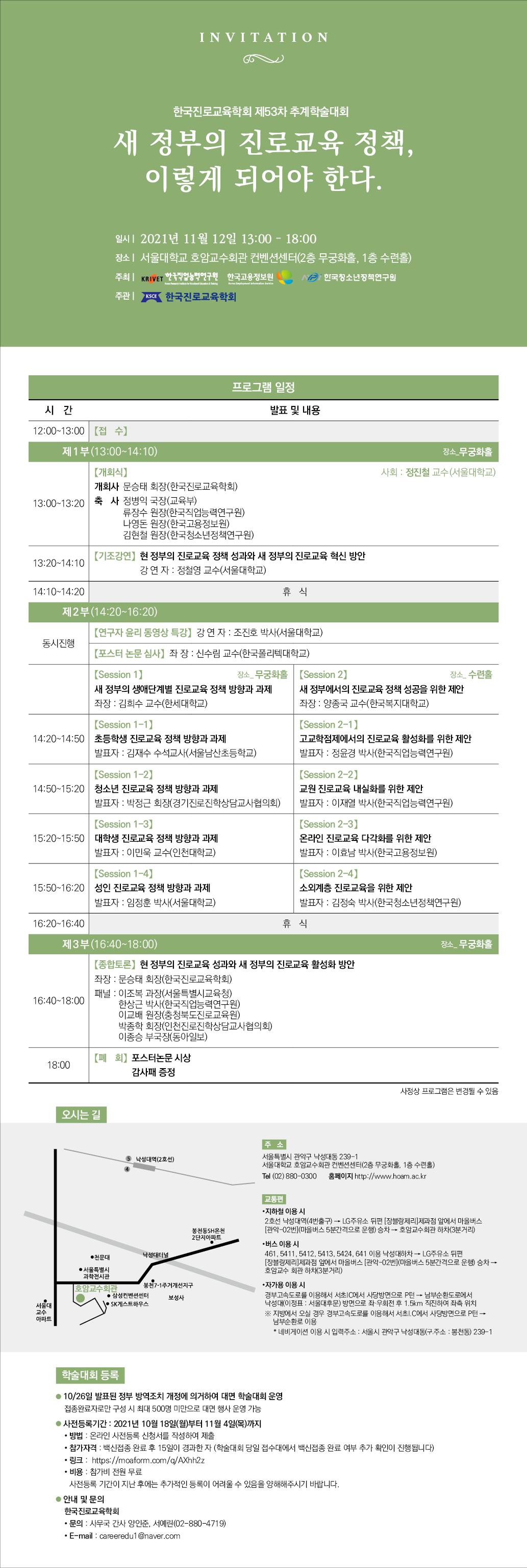 한국진로교육학회는 2021년 11월 12일(금) ‘새 정부의 진로교육 정책, 이렇게 되어야 한다’ 라는 주제로