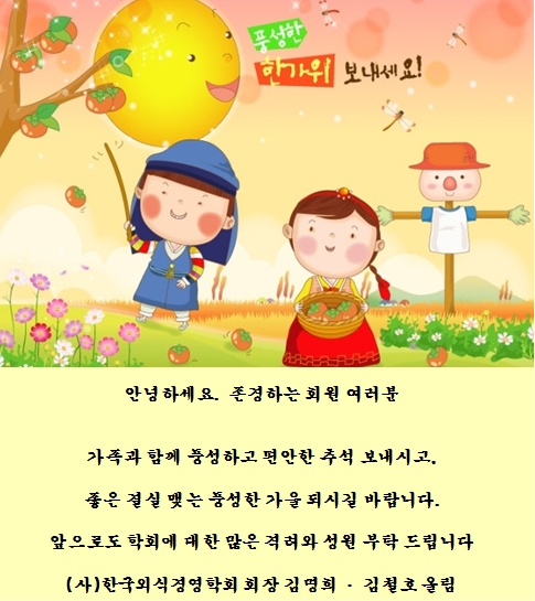 (사)한국외식경영학회 회장 김명희 · 김철호 올림