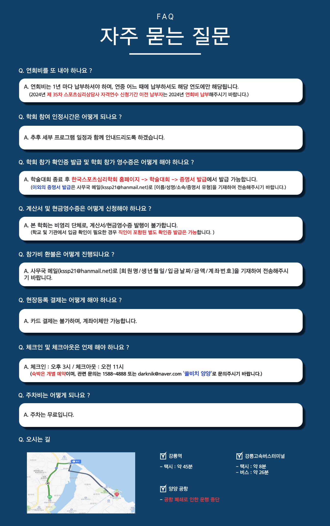 - 사전 등록비 입금 : 하나 748-910012-87504(한국스포츠심리학회)