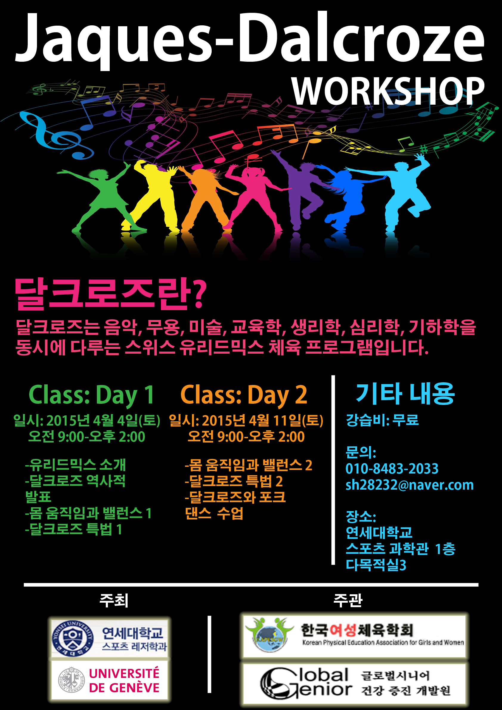 Jaques-Dalcroze worksop(달크로즈 무브먼트: 움직임·소리 등을 동시에 다루는 유리드믹스 프로그램)의 기회를 제공하고자 합니다.